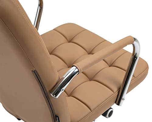 CLP Sedia Girevole Scrivania Terni con Braccioli in Stoffa O Similpelle I Poltroncina Studio con Ruote, Colore:Marrone Chiaro, Materiale:Ecopelle