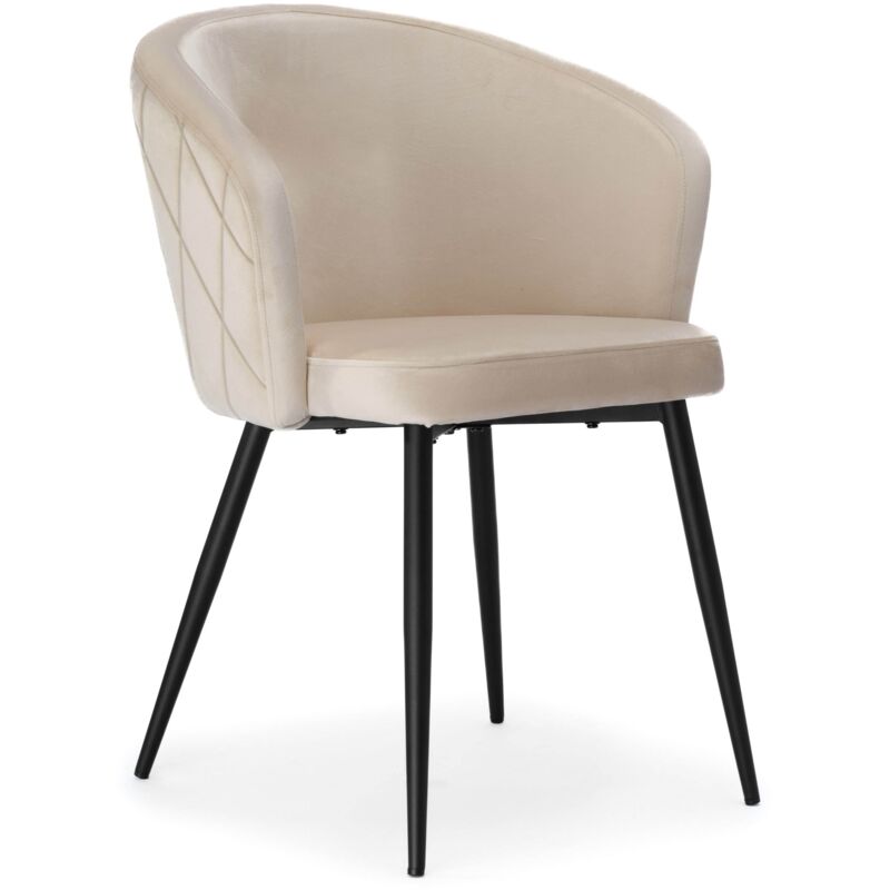 Sedia HAMPTON velluto beige Destinazione d'uso: spogliatoio, sala da pranzo | Colore: beige Moderna, comoda e funzionale Moderna, comoda e funzionale La sedia Hampton della collezione Velvet è una sedia moderna dal design unico. Realizzato con materiali di altissima qualità con attenzione ai più piccoli dettagli. Il sedile in velluto è rivestito con un materiale di velluto piacevolmente morbido. Questo lo rende molto morbido al tatto. Uno degli elementi più caratteristici della sedia Hampton sono le cuciture trapuntate, che creano un interessante motivo a griglia sullo schienale. È un bellissimo dettaglio decorativo. Il modello garantisce un adeguato supporto per la schiena e comfort di utilizzo. Le gambe della sedia sono realizzate in acciaio verniciato a polvere, che non solo conferisce loro un aspetto elegante, ma garantisce anche una durata e una resistenza eccezionali. Il loro colore nero intenso conferisce alla sedia un carattere raffinato che si adatta perfettamente a vari