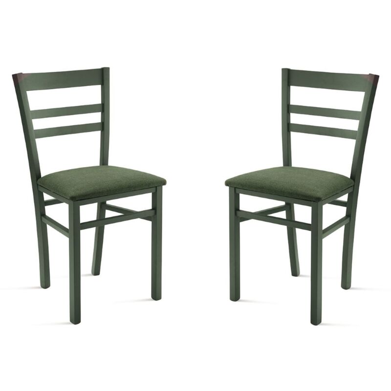 Sedia da cucina HOLLY in tessuto e struttura in legno. Sedia con schienale e seduta in un unico pezzo,totalmente ergonomica con imbottitura sullo schienale con gambe in legno. Dal design ed elegante grazie al rivestimento in tessuto, donando il massimo comfort per voi e i vostri ospiti. Perfetta da utilizzare in ambienti privati come sala da pranzo o camera da letto, ma anche in locali quali bar, ristoranti. Si consiglia di pulire il tessuto con un panno umido, evitando l'uso di prodotti chimici. Il set contiene 2 sedie HOLLY CARATTERISTICHE Materiale: Tessuto, Legno Colore: Verde Colore Gambe: Verde Peso: 7 kg singola sedia Sfoderabile: No Tipologia: Sedia in tessuto Numero sedie nel set: 2 Dimensioni: Larghezza 42cm / Profondita' 45 cm / Altezza 85 cm Altezza seduta: 48 cm Da montare: No Manutenzione: Pulire con un panno umido non abrasivo e adoperare un detergente neutro
