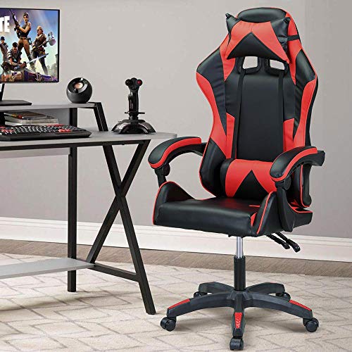 Sedia Poltrona Gaming Rosso e Nero Da Scrivania Per Ufficio Casa Reclinabile Con 5 Ruote Girevoli Direzionale + Supporto Lombale e Cuscino Poggiatesta