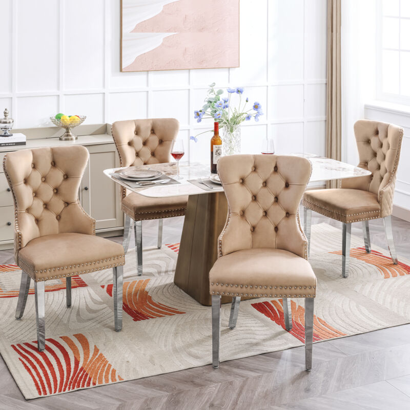 Dettagli del prodotto Dimensioni del prodotto 1 sedia: 53*47*94,5 cm Peso del prodotto 7,83 kg/pezzo Materiale velluto, spugna, MDF Peso del cuscinetto 150 kg/1 sedia Assemblaggio richiesto 5 minuti Lista di imballaggio 4 *parti, viti e strumenti richiesti Numero di pacchetti 2 Paese d'origine Cina Con schienale Sì Imbottitura vellutata del sedile per il massimo comfort di seduta Godetevi un'esperienza di seduta incomparabile. Questo tavolo da pranzo in velluto con sedie non solo ti offre un posto dove mangiare ma anche una sorta di onorevole comfort. Ogni sedia è realizzata in un tessuto di velluto morbido e delicato che sembra una seconda pelle e ti avvolge dolcemente ogni volta che ti siedi. L'imbottitura altamente elastica si adatta alle curve del corpo, così potrai immergerti in un'esperienza di seduta indimenticabile durante un pranzo di lavoro o una cena in famiglia. Capacità di carico stabile, che mostra la promessa di qualità. Selezioniamo materiali di alta qualità e