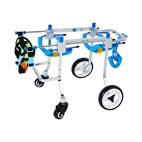 Sedia a rotelle per cani, supporto completo regolabile, sedia a rotelle a 4 ruote, carrello per cani anteriore e posteriore, riabilitazione per disabili, piccoli cani, cuccioli, gatti (XS)