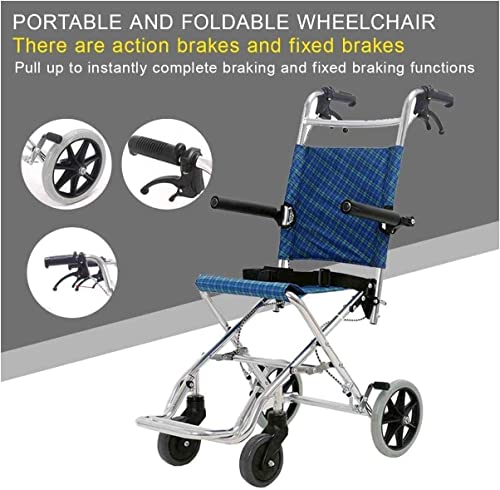 Sedia a rotelle da Viaggio Pieghevole, Sedia a rotelle Ultra-Leggera Portatili, Sistema di Bloccaggio dei Freni, Ruota Anteriore Universale a 360, Adatta per Anziani e disabili