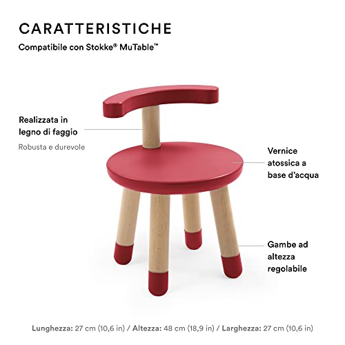 Sedia Stokke MuTable, Ciliegia - Sedia per la stanza giochi dei bambini con altezza della seduta regolabile - Realizzata in legno di faggio e vernice atossica a base d'acqua