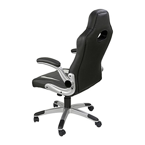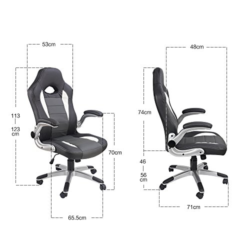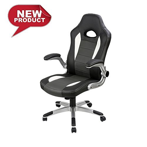 Sedia da ufficio girevole con braccioli regolabili, inclinabile, imbottitura in spugna elastica, sedia da computer, gaming moderno Black+White