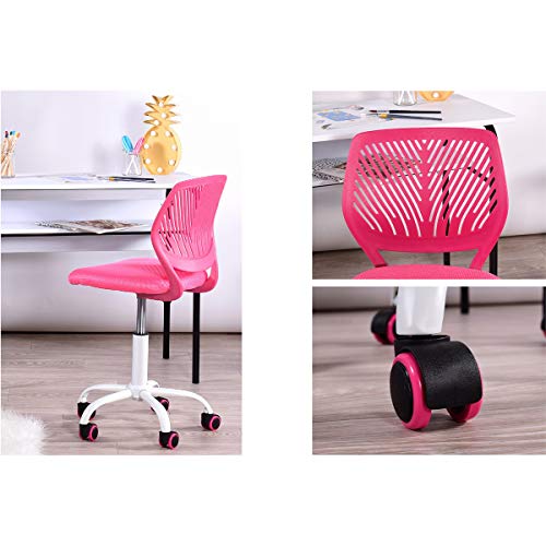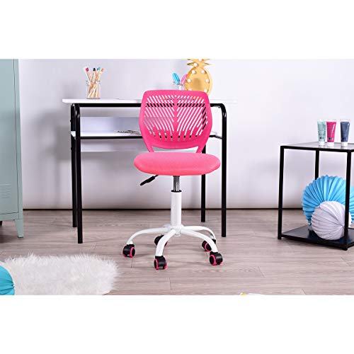 Sedia da ufficio regolabile, sedia da studio, sedia da computer, seduta in tessuto, sedia da ufficio girevole senza braccioli, rosa