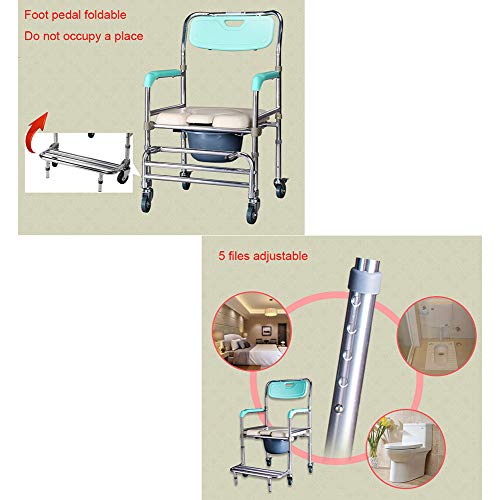 Sedia WC/Sedia Doccia con Ruote/Toletta del Posto di Guida Portatile per Gli Adulti/Altezza Regolabile Sedia Mobile Comode / 250 Libbre Peso capacità