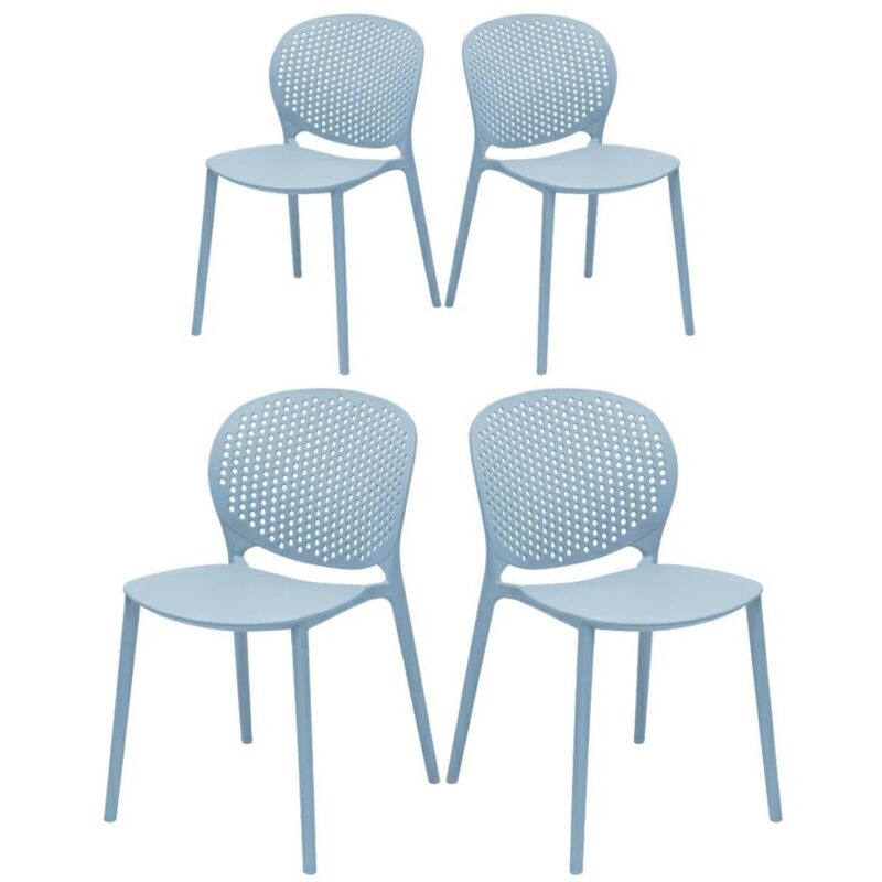 Sedie Set 4 Sedie da Giardino 56x47,5x79,5 cm Lolly Azzurre La sedia monoblocco Lolly è un complemento d'arredo particolare, realizzato in polipropilene fiber-glass riciclabile tinto in massa con colori accesi per arredare con originalità il proprio giardino. La finitura è in colore blu con trattamento anti-UV. La particolarità è nella sua forma, ergonomica, con una spalliera a fori circolari che le da un tocco di unicità senza eguali. Lolly sedia da giardino in resina Blu è perfetta come complemento di arredo per le tue giornate da trascorrere in compagnia dei tuoi amici all'aria aperta: grazie alla sua solida struttura e alla sua comoda seduta ti permetterà di godere comodamente del relax in qualsiasi momento della giornata. La sedia Lolly Blu si caratterizza soprattutto per l'eccezionale design del suo schienale, interamente traforato che si lega alla seduta creando una forma sinuosa. La sedia in resina senza braccioli Lolly Blu è particolarmente confortevole come sedia per sala da