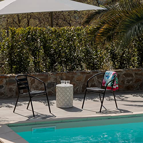 Set Sedie da Giardino, Sedie da Esterno per Giardino, Terrazza, Balcone, Veranda, Piscina, in Metallo, Sedie Impilabili, Colore Nero, 2 Pezzi 56x55x75 cm