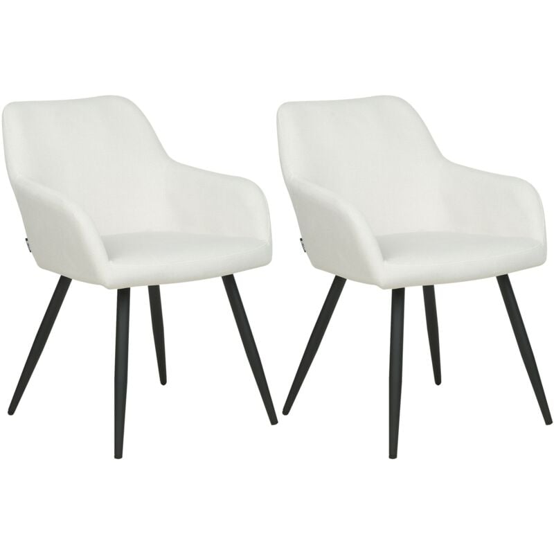 Set di 2 sedie moderne. Valorizza il tuo spazio vitale con le nostre sedie da pranzo imbottite in velluto, pensate per funzionalità e comfort. Con il loro design elegante e le gambe in metallo inclinate, queste sedie infondono con naturalezza un'eleganza moderna in qualsiasi ambiente. Siano intorno a un tavolo da pranzo o disposte come sedie laterali in un angolo accogliente del tuo soggiorno o camera da letto, creano un'atmosfera che emana stile. Dettagli: Tipo di prodotto: Sedia da pranzo Stile: Moderno Colore principale: Bianco Tonalità: Bianco sporco Tipo di materiale: Tessuto Materiale principale: Velluto Materiale secondario: Acciaio Materiale delle gambe: Acciaio Materiale della seduta: Tessuto Composizione del materiale: 100% Poliestere Poggiabraccia: Sì Impilabile: No Dimensioni: Altezza dei poggiabraccia: 66 cm Profondità: 62 cm Spessore della seduta: 5 cm Altezza della seduta: 47 cm Larghezza: 59 cm Altezza: 78 cm Dimensioni seduta: 54x43 cm Peso: 6 kg Portata massima: 150