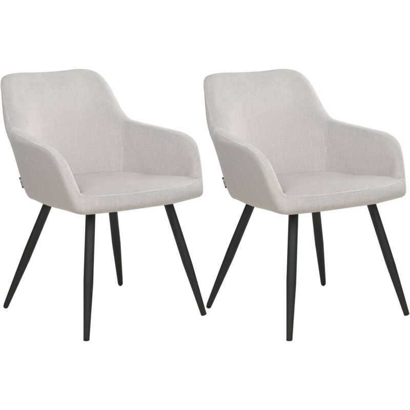 Set di 2 sedie moderne. Valorizza il tuo spazio vitale con le nostre sedie da pranzo imbottite in velluto, pensate per funzionalità e comfort. Con il loro design elegante e le gambe in metallo inclinate, queste sedie infondono con naturalezza un'eleganza moderna in qualsiasi ambiente. Siano intorno a un tavolo da pranzo o disposte come sedie laterali in un angolo accogliente del tuo soggiorno o camera da letto, creano un'atmosfera che emana stile. Dettagli: Tipo di prodotto: Sedia da pranzo Stile: Moderno Colore principale: Beige Tonalità: Tortora Tipo di materiale: Tessuto Materiale principale: Velluto Materiale secondario: Acciaio Materiale delle gambe: Acciaio Materiale della seduta: Tessuto Composizione del materiale: 100% Poliestere Poggiabraccia: Sì Impilabile: No Dimensioni: Altezza dei poggiabraccia: 66 cm Profondità: 62 cm Spessore della seduta: 5 cm Altezza della seduta: 47 cm Larghezza: 59 cm Altezza: 78 cm Dimensioni seduta: 54x43 cm Peso: 6 kg Portata massima: 150 kg