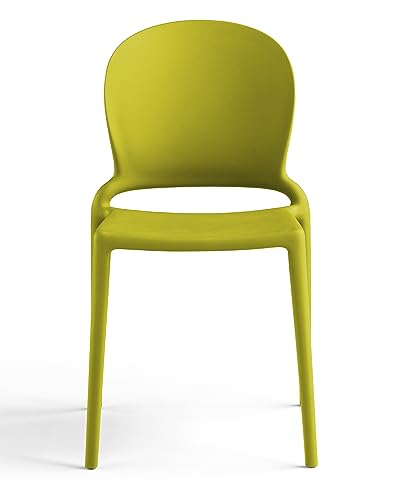 Set di 4 Sedie Jasmine in Polipropilene e Fibra di Vetro trattato Anti-UV da Interno/Esterno Cucina Soggiorno - impilabile (Giallo Limone)