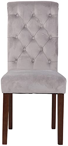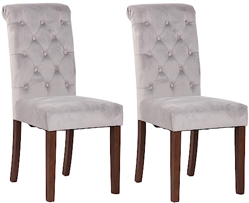 CLP Set di 2 sedie da pranzo Lisburn I Velluto I Tessuto I Sedie imbottite Trapuntate Chesterfield Design, Colore:grigio, Materiale:Velluto