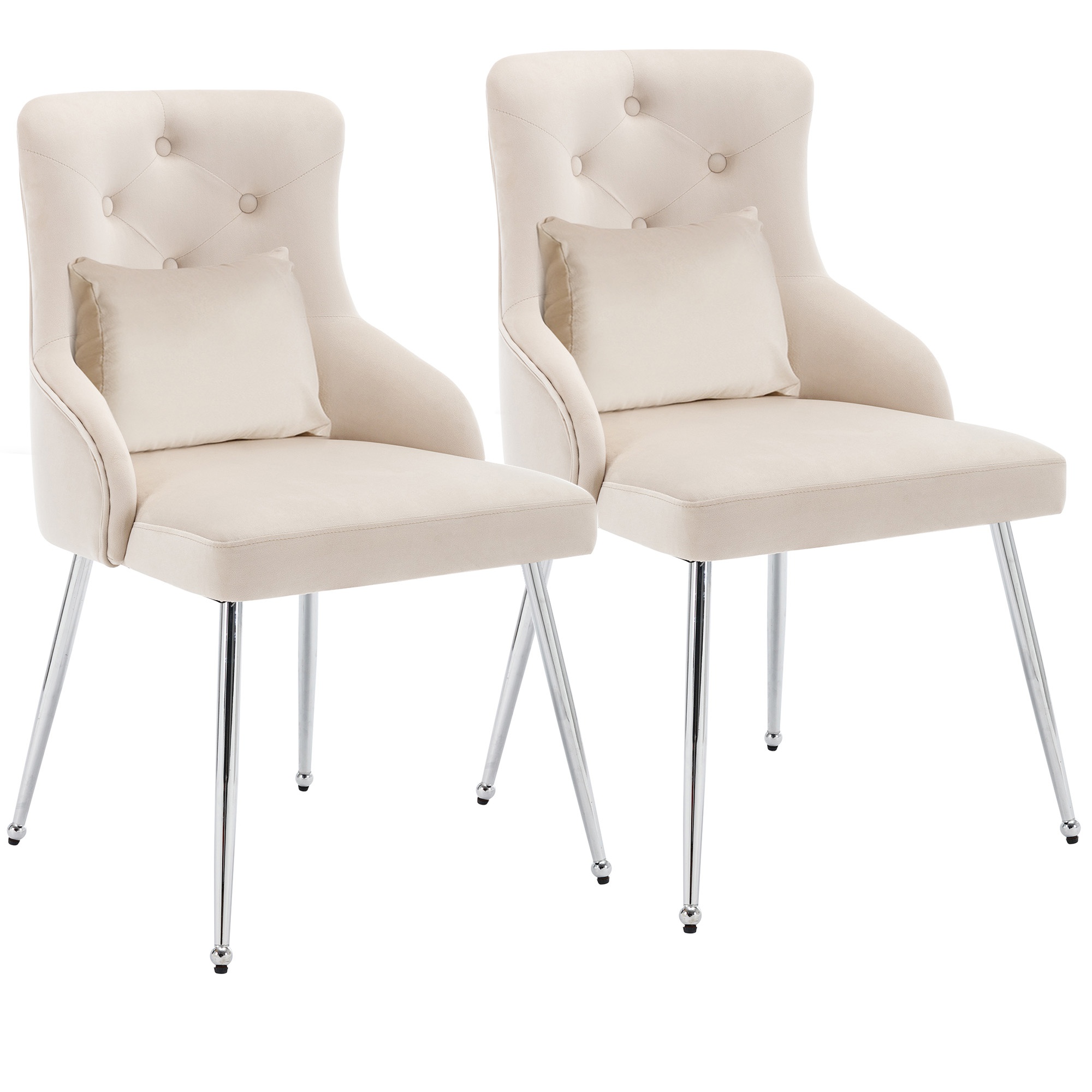 Queste sedie eleganti e moderne, rivestite in morbido tessuto effetto velluto beige, sono perfette per aggiungere un tocco di classe a qualsiasi sala da pranzo o salotto. Grazie alle dimensioni di 54.5x58.5x87.5 cm e un peso di 8,4 kg ciascuna, offrono un comfort superiore, anche grazie alla densa imbottitura in spugna e al cuscino lombare ergonomico. Le gambe in metallo robusto assicurano stabilità e durata, supportando fino a 150 kg, mentre i piedini regolabili proteggono il pavimento da graffi.