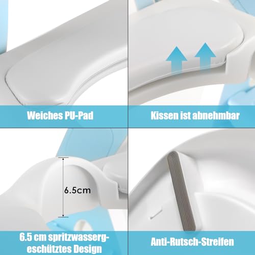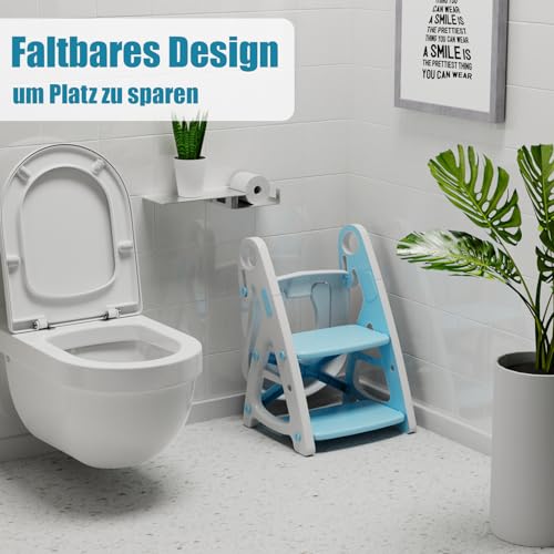 Sedile WC per Bambini con Scale, Sedile WC e Sgabello Bambini 2 in 1, Supporto Triangolare, Vasino con Imbottitura in Poliuretano, Gradini Ingranditi, Blu