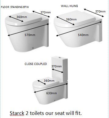 Sedile WC designed to fit Duravit Starck 2 standard Pans con interasse fori tra 180 - 220 mm. Soft Close, Quick Release. Realizzato in materiale anti Bac urea plastiche.