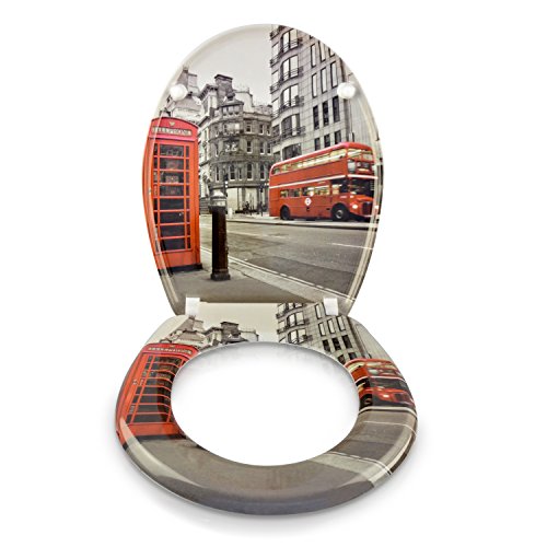 Sedile wc fantasia e chiusura ammortizzata - Motivo "London" - Copriwater in duroplast incluso materiale montaggio