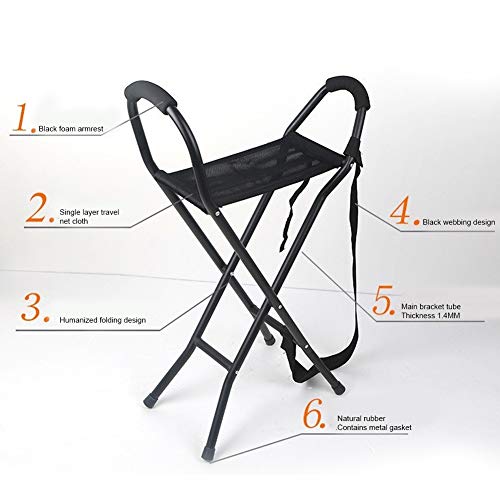 Sedile pieghevole in canna, canna con sedile Combo leggero, sgabello portatile in canna Pratico sedile pieghevole per sedia stampella, bastone da passeggio 249,1 libbre Aiuto da viaggio in lega di all
