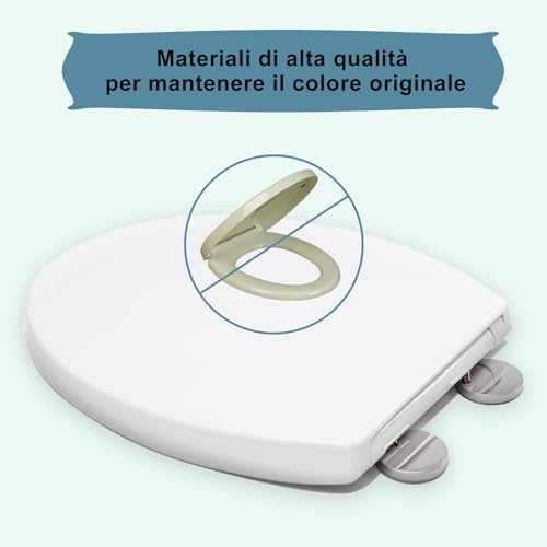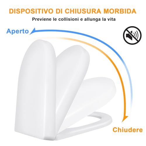 【Design Ergonomico】Copriwater allargato bellissimo arco di design ad anello inferiore, bellezza semplice ed elegante,vi farà sentire un comfort senza pari.Un copriwater semplice e pratico,che vi farà sentire la bellezza più reale nella vostra vita quotidiana.Un WC confortevole,che permette di ridurre i tempi di utilizzo della toilette.