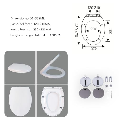【Copriwater Universale Di Tipo O】Il nostro coperchio bianco si adatta alla maggior parte delle toilette ovali,con una distanza di cerniera regolabile che consente di regolare il coperchio nella giusta posizione.Il coperchio è stato testato per avere una capacità di peso fino a 170 kg.Si prega di controllare attentamente la forma e le dimensioni prima di ordinare.