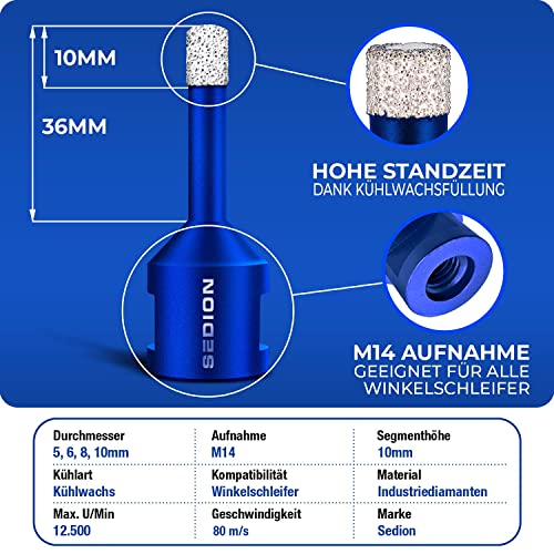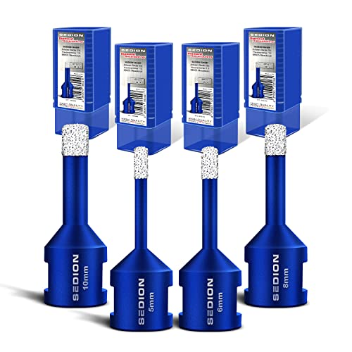 SEDION ® Sedion - Set di 4 punte per piastrelle, 5, 6, 8, 10 mm, M14, punte per trapano per piastrelle dure, set di punte diamantate di alta qualità, diamanti in gres porcellanato