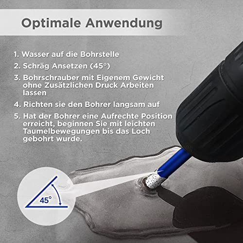 ✔️ Ù - Punta diamantata Perfetta per forare facilmente il gres fine, la ceramica (punta per ceramica), le piastrelle di pietra naturale, il marmo, il granito (punta per granito), le piastrelle, le piastrelle dure per pavimenti, il clinker smaltato, i mattoni di clinker, le lastre di pietra, le tegole dure.