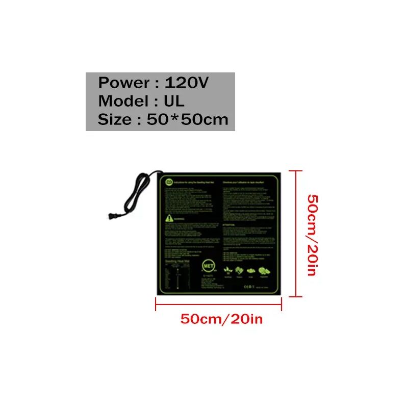 Description:Seeding heat mat is an ideal 24 hour veggie, herb, and flower grow faster and Safe wintering. It contains a solid state nichrome heating element. These heat mat permanently adhere to your flowerpot, forming a solid bond for optimum heat transfer.*Single circuit provides consistent temperature*Stronger heating wire with silicon insulation and thicker multilayer construction offer more uniform heating and durability*The heat wire are High frequency welding for permanently in the heat mat*Providing bottom heat you' ll increase the germination rate*Seeding heat mat for better plant growth and flower seed germinAtion Can be placed in many different sizes of seedl ing bow.*Increases the success of seedlings and cuttings, durable construction, waterproof and easy cleaning*Seedling heat mat for better veggie, herb, and flower seed germination*Increases the success of seedlings and cuttings*Each mat has a handy seed germination guide for many popular flowers and vegetables*Warms