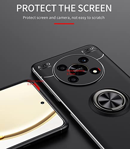 SEEKO Cover per Honor Magic4 Lite 5G, Protettiva Custodia con 360° Anello Supporto, Ultra Sottile Silicone TPU Bumper Antiurto AntiGraffio Case - Nero/Nero