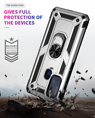 SEEKO Cover per Motorola Moto G60s, Militare Antiurto Protezione Silicone con 360° Anello Supporto Kickstand Rugged Custodia PC + TPU Bumper Case - Argento