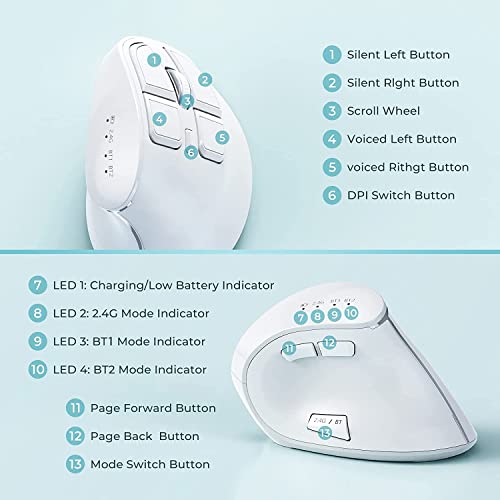 Seenda Mouse wireless ergonomico verticale (Dual Bluetooth + 2.4 G ricaricabile mouse wireless da gioco, mouse wireless multi-device per computer portatile/PC/Mac/Tablet/iPad (Windows/Android/iOS),