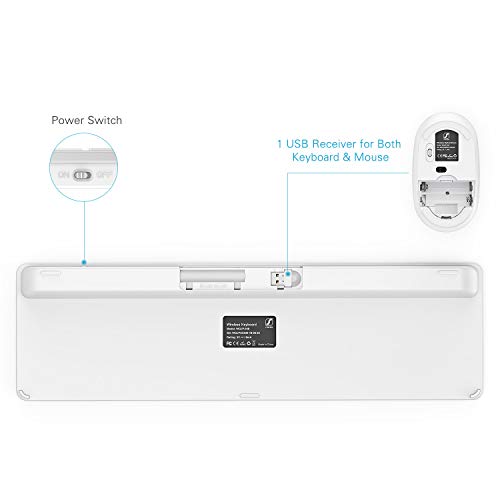 Seenda - Set tastiera e mouse wireless full size, ultra sottile, 2,4 G, connessione stabile, DPI regolabile con tastierino numerico, bianco e argento