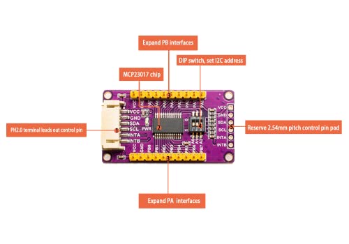 SEENGREAT MCP23017 IO Expander Module I2C Interface Expands 16 I/O Pin for Ardui/Stm32/Raspberry Pi Zero W Zero WH 2B 3B 3B + 4B, 3.3V e 5V livelli, 3-Digit DIP Switch