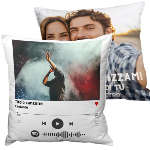SeeSee Cuscino Personalizzato con codice Spotify e Foto, Retro personalizzabile, Sfondo colorato a scelta, (40_x_40_cm, bianco personalizzato)