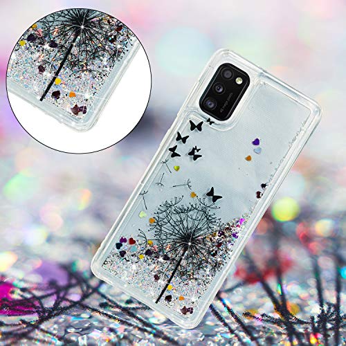 SEEYA Custodia per Samsung Galaxy A41 Cover Brillantini Glitter Bling Liquido Soft TPU Silicone Cover Modella Dente di Leone Protettivo Morbido Bumper Gel Skin Case Trasparente Quicksand Case
