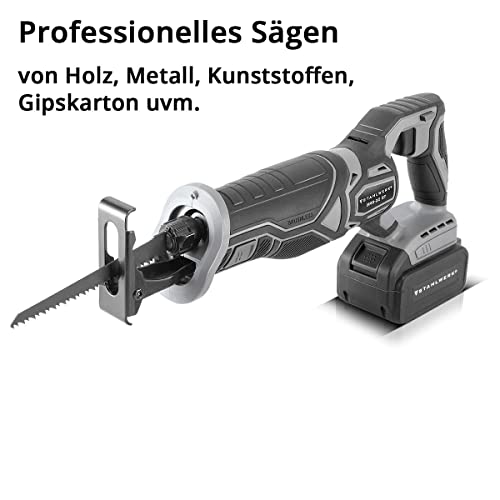 Sega circolare a batteria BRS-20 ST STAHLWERK Sega circolare con batteria agli ioni di litio da 20 Volt, 4 Ah, mandrino a serraggio rapido, velocità minima 0-2600 giri/min, lunghezza corsa 28 mm
