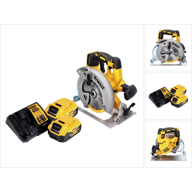 Contenuto della fornitura: - 1x sega circolare a batteria DeWalt DCS 570 18 V - 1x Lama in metallo duro DeWalt 184 mm 24 denti - 1x guida di taglio - 1x Attrezzo di montaggio - 1x Accessorio per cofano di aspirazione della polvere - 2x batterie Dewalt DCB 184 18V 5.0Ah Li-Ion - 1x Caricabatterie Dewalt Descrizione del prodotto: La DeWalt DCS 570 è una versatile sega circolare portatile a batteria da 18 volt per tagli a misura o tagli trasversali e smussati nel legno e in altri materiali da costruzione. La regolazione della profondità di taglio e dell'angolo di taglio è facile e precisa. Il motore brushless è estremamente robusto e fornisce una trasmissione di potenza costante con una coppia elevata di 5500 giri/min. La struttura stabile e il funzionamento a basse vibrazioni garantiscono un utilizzo continuo senza problemi. L'impugnatura supplementare sulla parte anteriore garantisce un utilizzo sicuro a due mani. Grazie all'angolo di smussatura fino a 57°, i tagli a smusso rapidi e