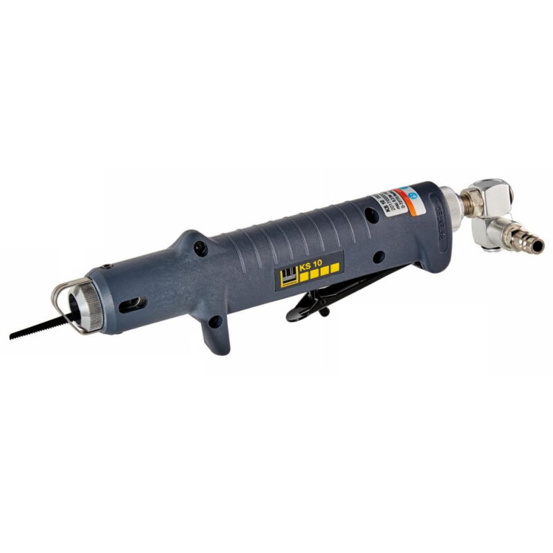 Sega per carrozzeria Schneider KS 10 Caratteristiche principali: Sega per carrozzeria compatta con meccanismo di sollevamento di lunga durata per uso professionale, principalmente nel settore automobilistico e metallurgico Lavoro senza fatica grazie al peso ridotto Rumore e vibrazioni ridotti il robusto alloggiamento in plastica riduce sensibilmente le vibrazioni e il rumore Flessibilità d'uso la sega per carrozzeria è perfetta per l'utilizzo su pannelli di carrozzeria e parti in plastica Maggiore durata e guida sicura dell'utensile grazie alla staffa di arresto regolabile in continuo Utilizzo sicuro grazie alla leva di comando con dispositivo di sicurezza di rilascio Migliore manovrabilità grazie al raccordo rotante per l'aria compressa Incluse 3 lame Dati tecnici Capacità di taglio acciaio 3,1 mm Fabbisogno d'aria 4 l/s Vibrazioni 3,7 m/s² Peso 0,8 kg Pressione di lavoro 6,3 bar Velocità di corsa 9500 min-1 Dimensioni (L x L x A) 280x70x35 mm Pressione di lavoro 6,3 bar Velocità di