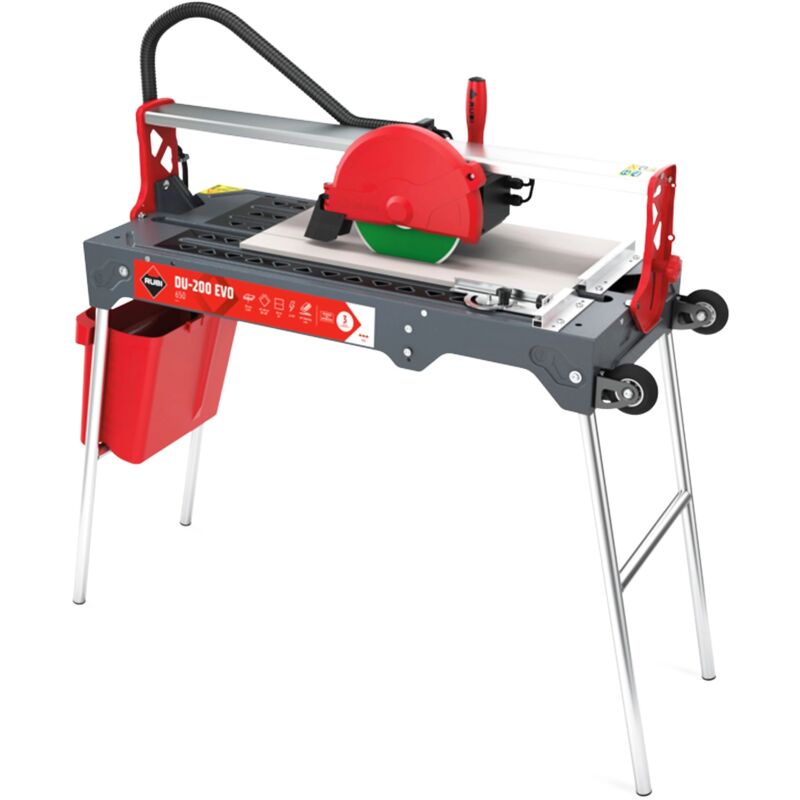 La Segatrice Elettrica Rubi DU-200 EVO 650 è una segatrice elettrica con testa mobile, studiata per la realizzazione di ristrutturazioni e piccoli lavori. È perfetta per il taglio generale delle piastrelle in ceramica. La segatrice elettrica DU-200 EVO è raccomandabile per il taglio di bicottura (tipo BIII) e gres smaltato (tipo Blla). La segatrice elettrica DU-200 EVO RUBI, è equipaggiata con gruppo testa motore a trasmissione diretta, di 1,1 CV (0,8 kW) di potenza, con protettore termico. Sistema integrato di gambe pieghevoli, di facile montaggio. Munita di ruote ed impugnatura per facilitarne la movimentazione ed il trasporto. Deposito d'acqua esterno, di facile estrazione. Maggiore comodità di pulizia. C³ System, Migliora la pulizia e il raffreddamento del disco per ottenere prestazioni superiori. La capacità di taglio può variare in funzione della posizione della testa, flange speciali e diametro del disco. MATERIALI DA TAGLIO Per il taglio della ceramica, ideale per piastrelle e