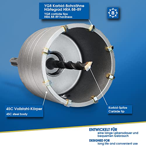 IL SET COMPRENDE: fresa a tazza carotatrice Ø 68mm, Adattatore SDS Plus 110mm, Centraggio Trapano 8x110mm