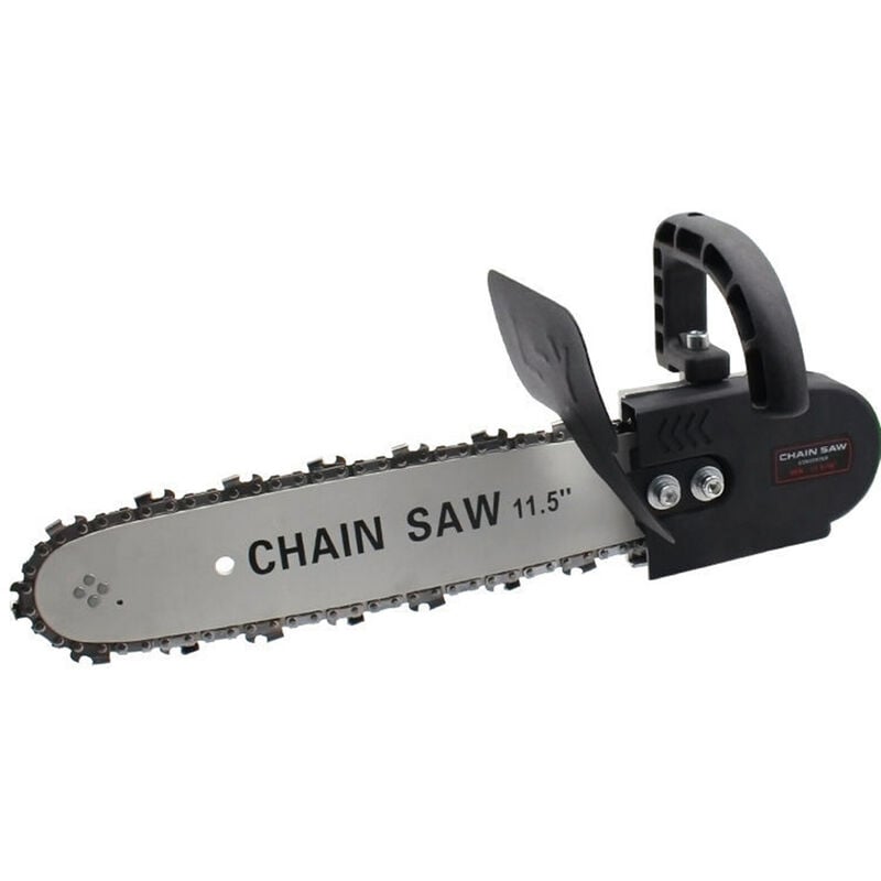 Motosega elettrica modificata per smerigliatrice angolare, piastra guida per stampaggio integrale, catena ad alta durezza, tenuta della catena regolabile, deflettore di ispessimento della protezione di sicurezza, serbatoio dell'olio visivo, metallo, legno, vetro e altri materiali facili da tagliare, pratico e conveniente. Caratteristiche: * La catena dura da tempra, previene la rottura, l'elevata durezza, il taglio durevole resistente all'usura e regolare. * Durevole una piastra guida per stampaggio, tecnologia di laminazione a freddo, nessuna saldatura, nessuna frattura. * Regolazione della tensione della catena, ruotare il cacciavite a sinistra ea destra per regolare la tensione della catena. * Deflettore addensato con protezione di sicurezza, protezione sicura in ogni momento per evitare schizzi di trucioli di legno. * Tanica dell'olio incorporata, sistema di alimentazione automatica dell'olio, lubrificazione efficace, nessuna perdita di olio, riduzione dell'usura della catena. *