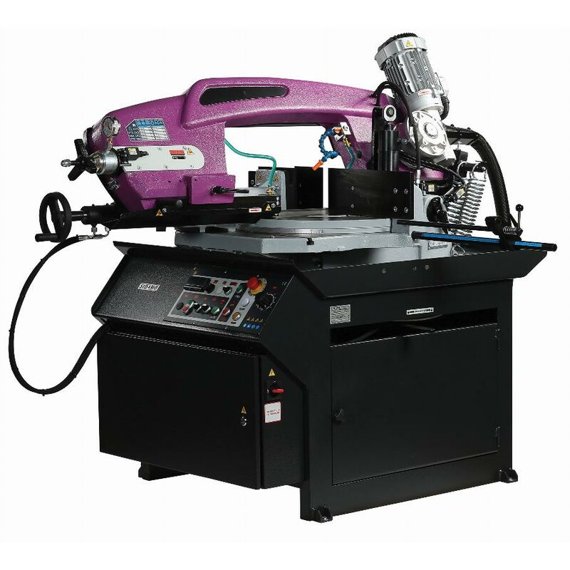 Dettagli: Ciclo semiautomatico completamente idraulico a fascia, ad arco e a morsa Controllo elettronico della velocità Abbassamento semiautomatico della prua Arco in ghisa ad alta rigidità Guide nastro dotate di cuscinetti e inserti in carburo per un'eccellente resistenza all'usura del nastro Guida banda mobile anteriore regolabile Sistema di lubrificazione a pompa elettrica a 2 punti Il fondo della morsa ruota con l'arco Morsa idraulica Comandi a bassissima tensione a 24 V Arresto a fungo con gancio Alloggiamento della fascia dotato di microinterruttore Protezione del motore tramite interruttore termico Isolamento elettrico IP 54 Motore con riduttore coassiale