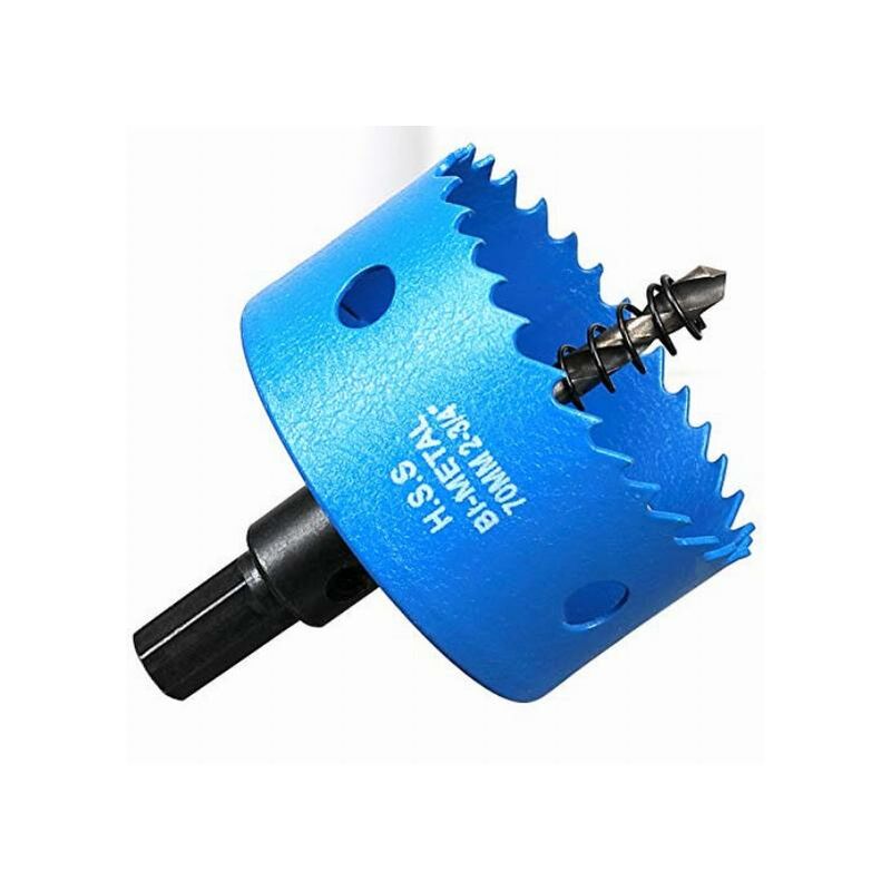 M42 - Sega a tazza bimetallica 38 mm - 180 mm. Caratteristiche: Sega a tazza universale. Con speciali tagli in metallo duro per tagli precisi. Eccellente estrazione del truciolo grazie alle particelle extra grandi. Con codolo esagonale. Con punta di centraggio HM Ø 8 mm. Utilizzabile direttamente, non è necessario un mandrino separato. Per legno, plastica, muratura, blocchi di gesso, calcestruzzo gassoso, eternit, lastre eraclite, mattoni e cartongesso. Specifiche del prodotto: Materiale: metallo HSS BI. Colore: rosso o blu a scelta. Livello di qualità di diversi colori: arancione > nero > blu > rosso Diametro: 38 mm - 180 mm in molte dimensioni. Profondità di taglio: 30 mm. Montaggio della sega a tazza. 1. Inserire le punte nel mandrino e fissare le viti sul lato del mandrino con una chiave esagonale. 2. Inserire il mandrino attraverso la parte inferiore fino alla punta della lama. 3. Posizionare la piastra di montaggio sulla sega e poi avvitare il dado per bloccare la piastra di