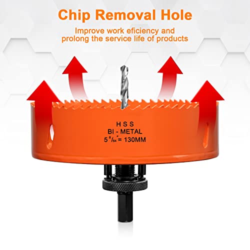 Sega a tazza diametro 130 mm, in acciaio super rapido HSS M42, bimetallo, colore arancione, fresa a tazza con codolo esagonale e punta per legno, cartongesso e lamiera metallica