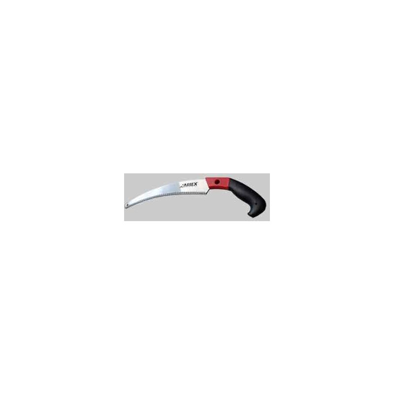 Lama curva con dentatura in acciaio. Impugnatura ergonomica bicomponente antiscivolo.