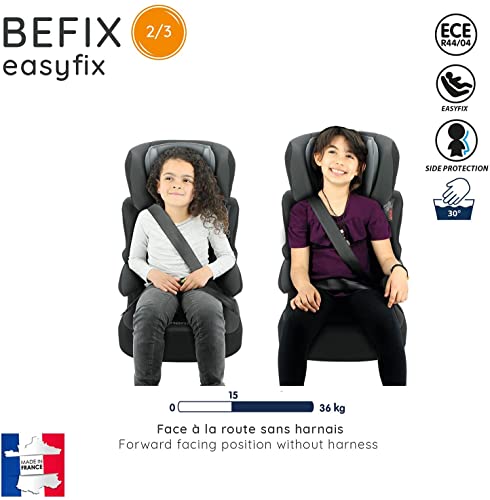GRUPPO 2/3: seggiolino auto BEFIX easyfix gruppo 2/3 per bambini da 15 a 36 kg, approvato secondo la normativa ECE R44/04 FISSAGGIO ISOFIX: il seggiolino BEFIX easyfix si fissa all'auto con il sistema isofix per un sostegno eccellente