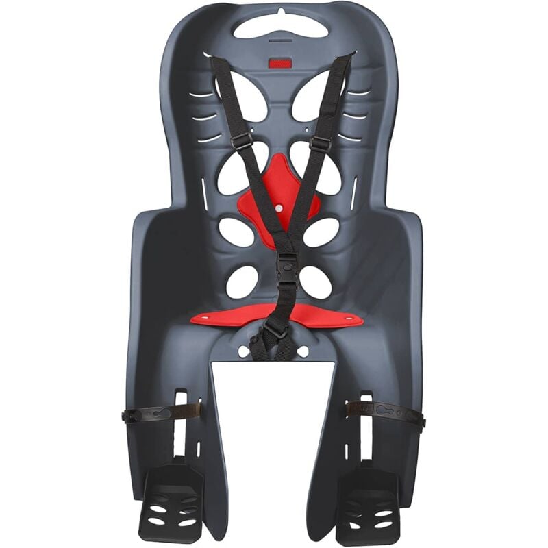 nella parte superiore c'è anche l'opportunità di impugnare il seggiolino durante il trasporto, la forma ricalca i polpastrelli della mano FRAACH è montato sul tubo del telaio con diametri da 25 a 35 mm della bicicletta, attraverso un attacco composto da Plastica resistente alle compressioni ed acciaio zincato;