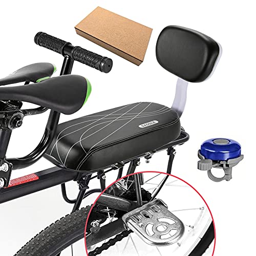 Seggiolino Bici Posteriore per Bicicletta per Bambini, Seggiolino con Schienale, Bracciolo, Campanello E Set Poggiapiedi per Bambini MTB Bike Veicolo Elettrico,Bicicletta Parti Accessori (Nero)
