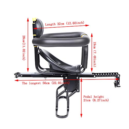 Due possibilità di fissaggio: ci sono due punti di fissaggio, sul tubo del sedile e sul manubrio del telaio della bicicletta o sul manubrio anteriore e sul tubo del sedile che possono essere scelti liberamente a seconda del modello. La posizione del sedile sul guardrail (2,6 pollici) può essere regolata aprendo e chiudendo il pratico sgancio rapido, perfetto per i bambini in crescita.