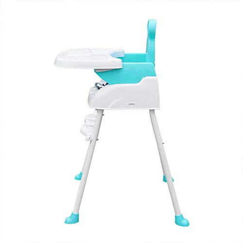 4 in 1 - Seggiolone portatile, altezza regolabile, per bambini, con vassoio, ruote in plastica e cinghie di sicurezza, doppio vassoio verde