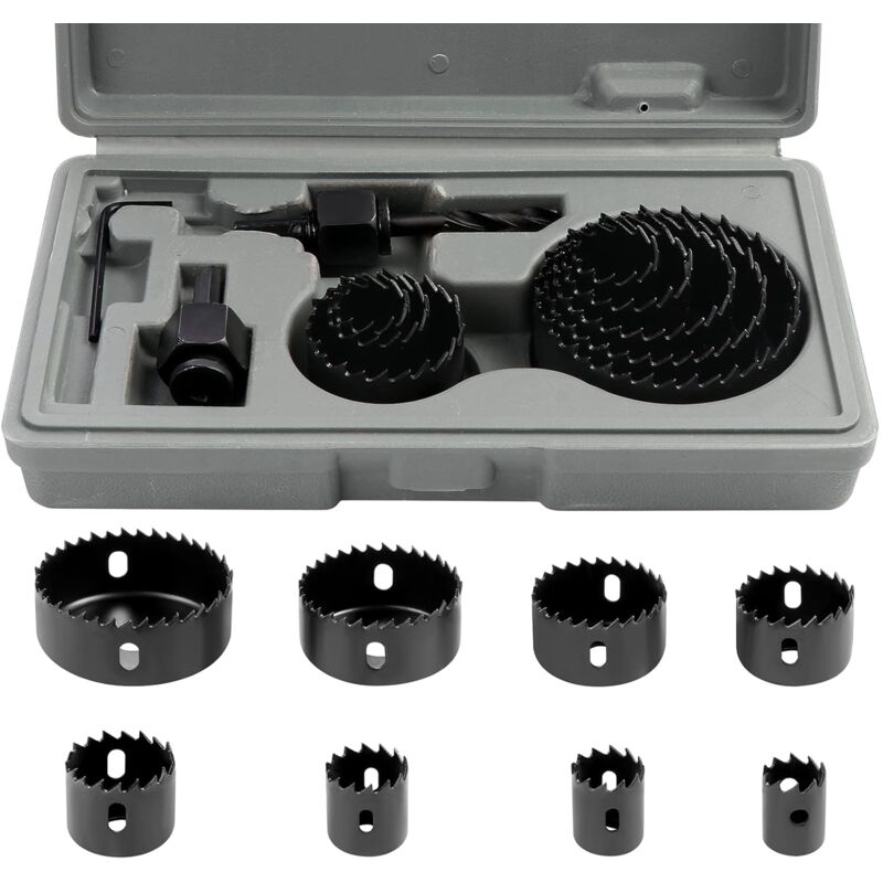 Realizzato in acciaio ad alto tenore di carbonio 50# - Lama affilata e resistente. Con l'ammollo ad alta frequenza, questi utensili da taglio per legno hanno una durezza superiore (HRC4-48) e una lunga durata. Contenitore: 11 taglierine per plafoniere confezionate in scatola per soffiaggio. Con questa scatola, puoi organizzare bene questi strumenti per il taglio dei fori ed è comodo e facile estrarre questi strumenti. Ampia applicazione: Queste seghe a tazza per impieghi gravosi sono adatte per legno, cartongesso, plastica, tubi in PVC, vetroresina, ecc. Sviluppate appositamente per legno, cartongesso, plastica. Contenuto della confezione: 8 seghe a tazza;
